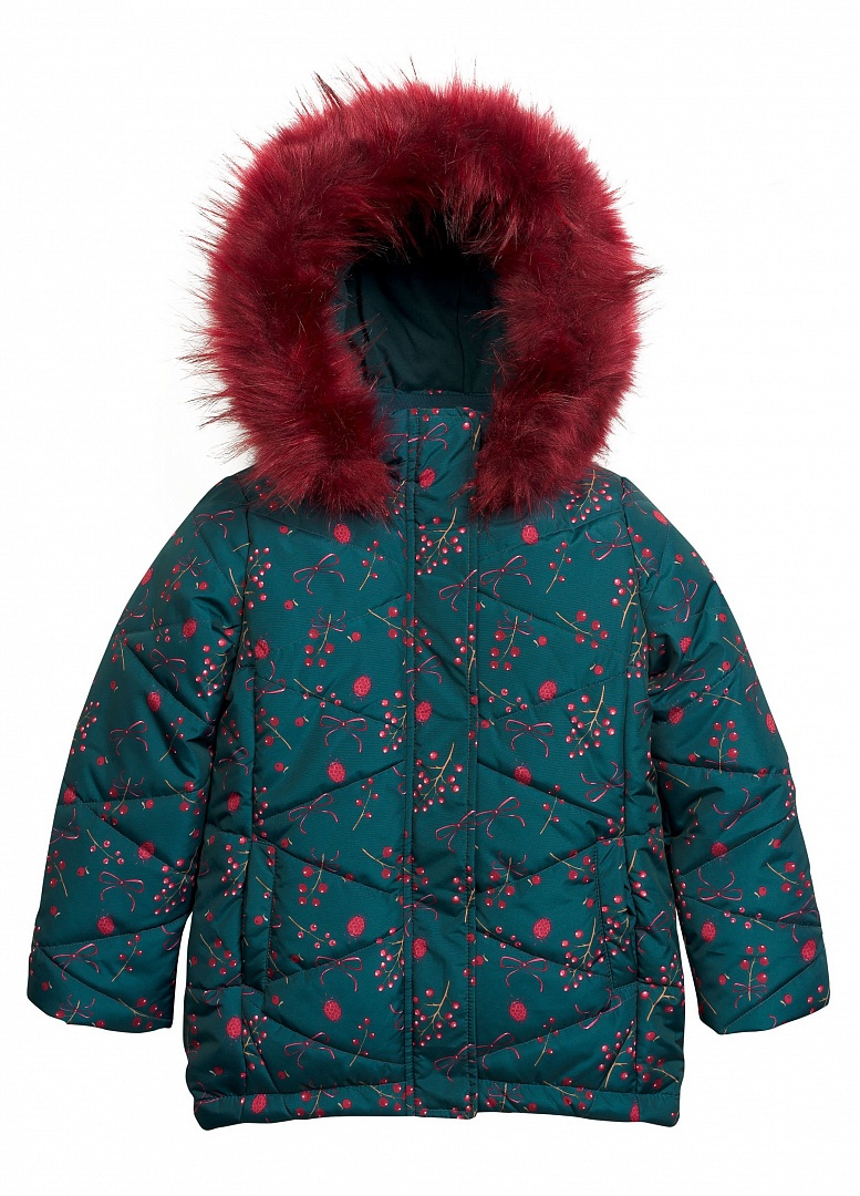 Куртка для девочек. Новинка! Куртка умеренного объёма, с рельефами по переду и спинке, создающими интересный силуэт, сужающийся от линии бедер к низу. Впервые на деталях переда, спинки и рукавах используется стежка в виде крупных ромбов. Меховая опушка съемная. Трикотажный воротник из рибаны. Регулировка объема по низу изделия. Карманы в рельефных швах. Внутренняя манжета по низу рукава из рибаны. Состав: 100%полиэстер, подклад: 60%хлопок 40%полиэстер, подклад рукавов: 100%полиэстер, утеплитель: 100%полиэстер