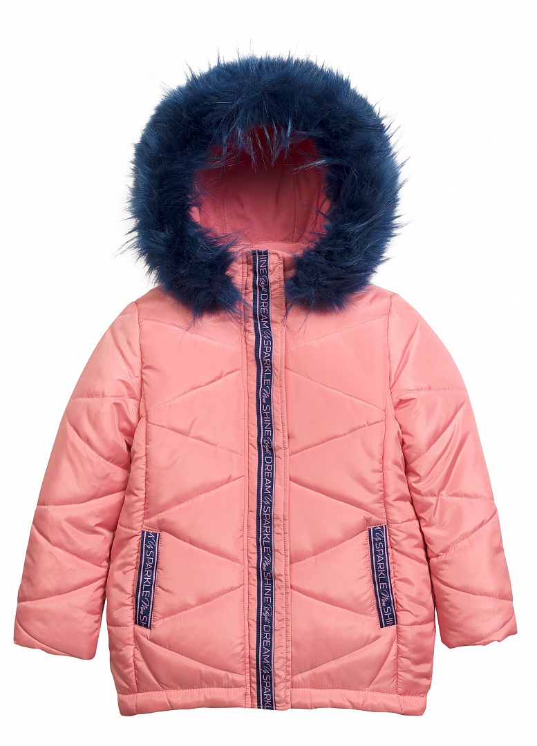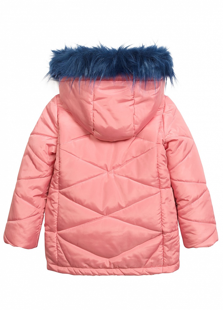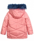 Куртка для девочек. Рекомендованный температурный режим: не ниже -15°С. Новинка! Демисезонная куртка на синтепоне, с рельефами по переду и спинке, силуэт - сужающийся от линии бедер к низу. Застежка на тесьму-молнию, наружная планка на кнопках. Воротник-стойка с хлопковым рибом с внутренней стороны, капюшон не отстегивается, меховая опушка отстегивается (на замке) Внутренние ветрозащитные манжеты рукавов - из риба. Ткань с водоотталкивающей пропиткой. Состав: 100%полиэстер, подклад: 60%хлопок 40%полиэстер, подклад рукавов: 100%полиэстер, утеплитель: 100%полиэстер