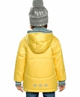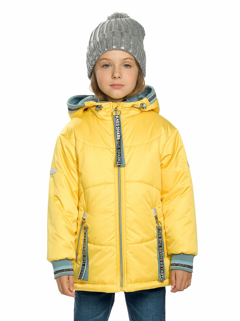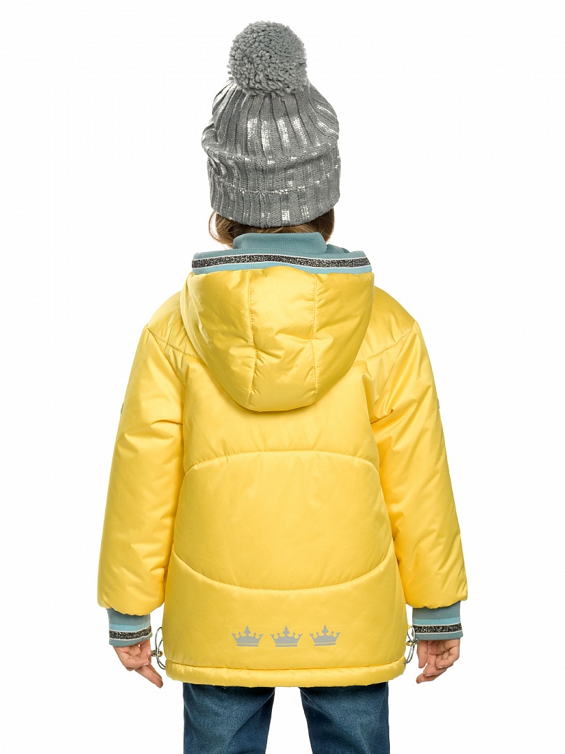 Куртка для девочек. Рекомендуемый температурный режим: не ниже -15°С. Куртка осенняя на синтепоне. Округлые формы отстрочки подчеркивают силуэт. Двухшовный неотстегивающийся капюшон с регулировкой объема, с декоративным рибом по краю. Воротник изнутри отделан рибаной. Курточная ткань с двусторонним водоотталкивающим покрытием. Объем по низу регулируется резиной со стопперами. Боковые карманы на молнии, с ограничителями. Пуллеры из декоративной принтованной тесьмы с крупными кольцами. Фурнитура с эффектом серебра, рибана и шпульная резина — с люрексом. Манжета из декоративного риба по низу рукава. Световозвращающие элементы. Состав: 100%полиэстер, подклад: 65%хлопок 35%полиэстер, подклад рукавов: 100%полиэстер, утеплитель: 100%полиэстер