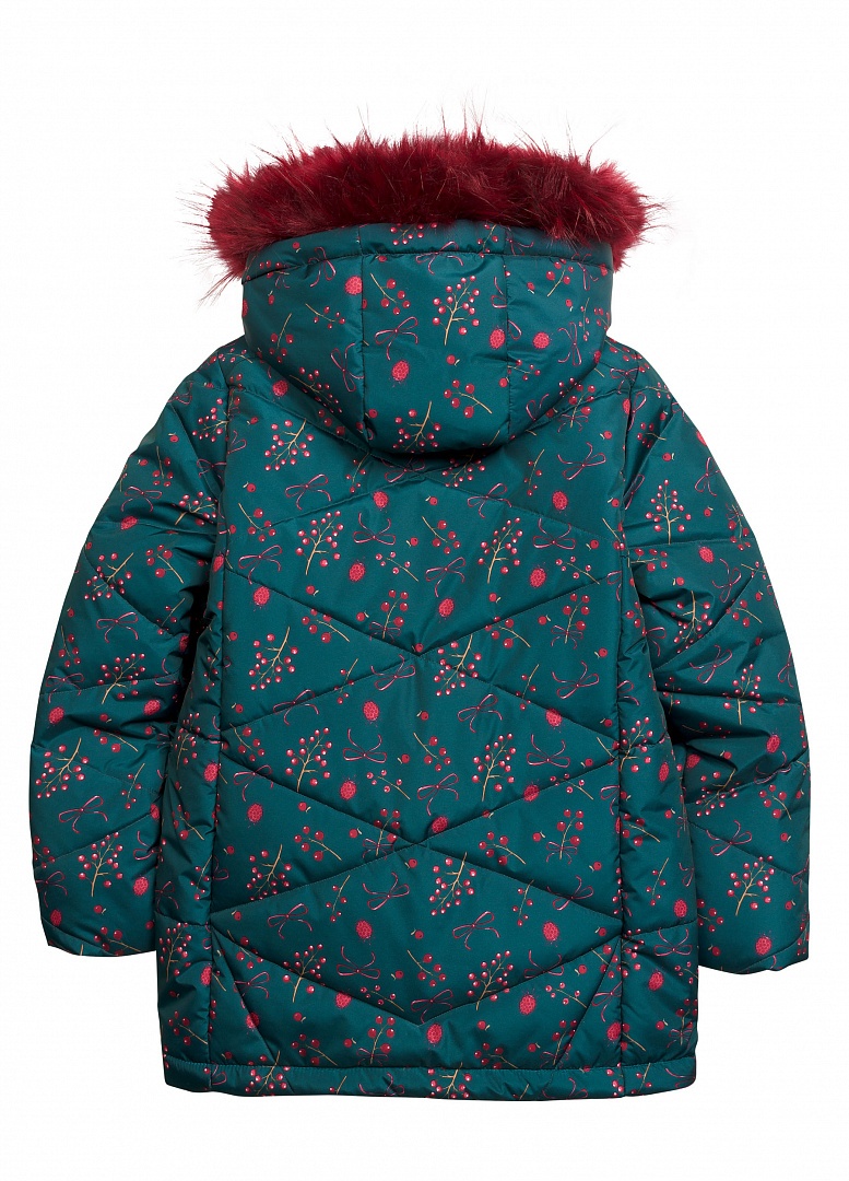 Куртка для девочек. Рекомендованный температурный режим: не ниже -15°С. Новинка! Куртка умеренного объёма, с рельефами по переду и спинке, создающими интересный силуэт, сужающийся от линии бедер к низу. Впервые на деталях переда, спинки и рукавах используется стежка в виде крупных ромбов. Меховая опушка съемная. Трикотажный воротник из рибаны. Регулировка объема по низу изделия. Карманы в рельефных швах. Внутренняя манжета по низу рукава из рибаны. Состав: 100%полиэстер, подклад: 100%полиэстер, утеплитель: 100%полиэстер