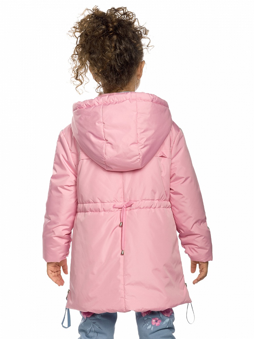 Куртка для девочек. Рекомендуемый температурный режим: не ниже -15°С. Осенняя удлиненная куртка-парка на синтепоне. Двухшовный неотстегивающийся капюшон с регулировкой объема. Воротник изнутри отделан рибаной. Курточная ткань с двусторонним водоотталкивающим покрытием. Широкая ветрозащитная планка с принтом. По спинке имитация кокетки, с утяжкой на декоративный шнурок. В боковых швах расположены функциональные застежки-молнии с пуллерами из тесьмы. Боковые карманы с объемными клапанами. Внутренняя манжета по низу рукава из рибаны. Световозвращающие элементы. Состав: 100%полиэстер, подклад: 60%хлопок 40%полиэстер, подклад рукавов: 100%полиэстер, утеплитель: 100%полиэстер