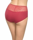 Женские трусики-шортики. Высокая посадка. Сочетание хлопковой ткани и кружева. Кружевные вставки начинаются на полочке и уходят в красивый треугольник на спинке изделия. По талии эластик с фестонным краем, декор в виде двух атласных бантиков. По ноге обработка эластиком с фестонным краем сверху. Состав: 93%хлопок 7%эластан, вставка: 90%полиамид 10%эластан