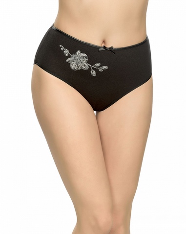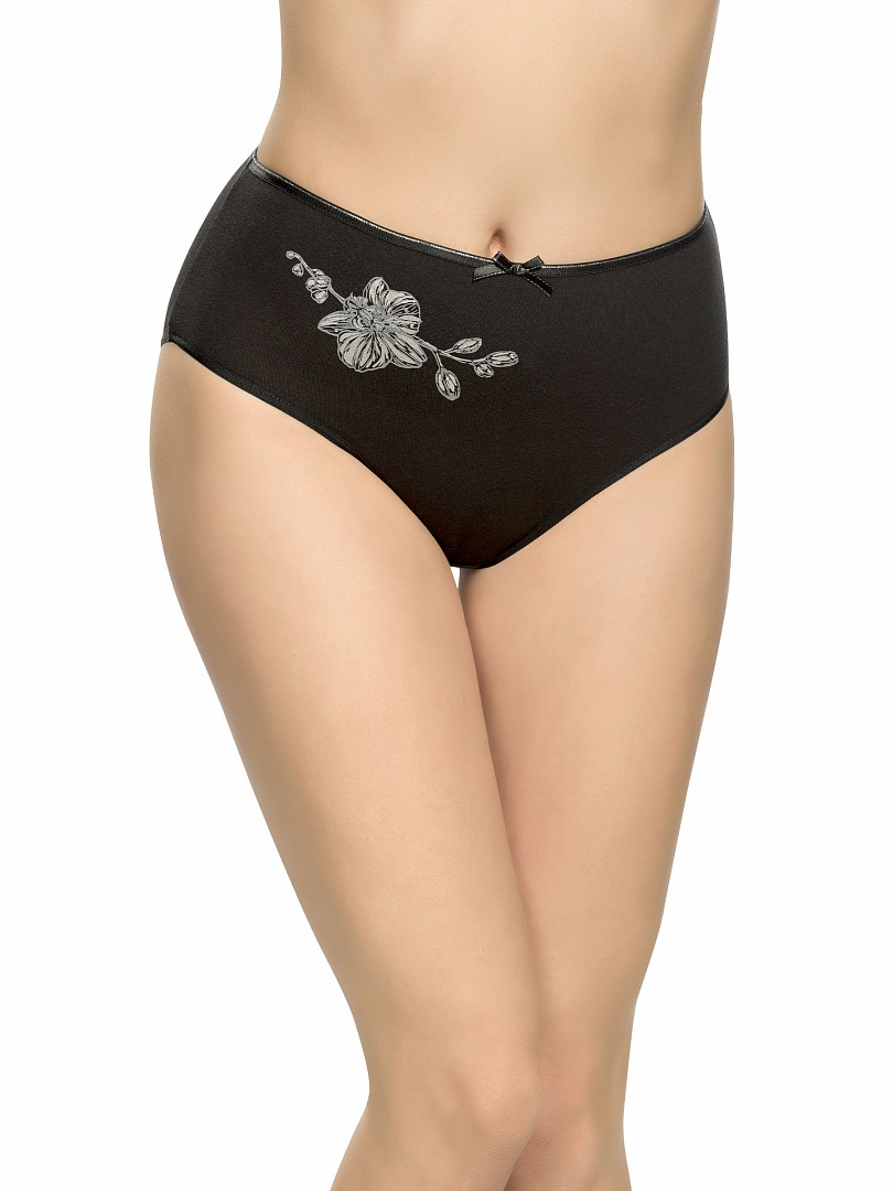 Женские трусики-слипы. Высокая посадка. Серебристый принт со стразами. По талии эластик со сгибом, декорированный строчкой из серебристого люрекса и атласным бантиком с люрексом. По ноге обработка эластиком сверху. Состав: 93%хлопок 7%эластан