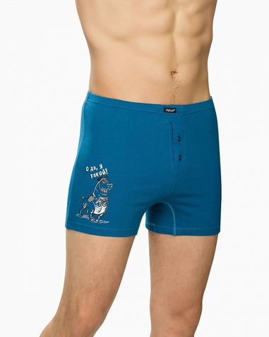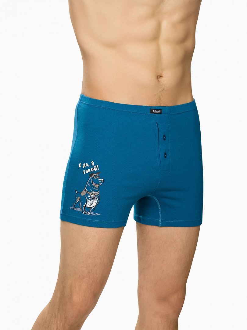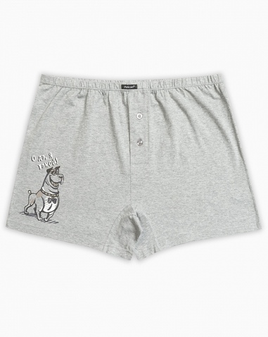 Мужские трусы-боксеры. На боковой части изделия прикольный принт: отрисованный в скетчевом стиле заигрывающий бульдог и надпись "О да, я такой!". Гульфик на двух пуговицах. Состав: 100%хлопок