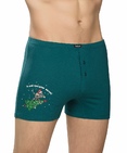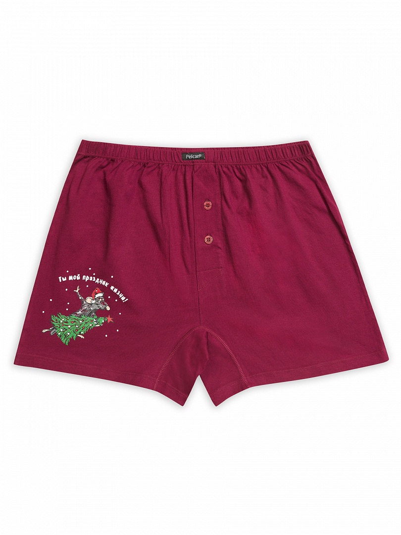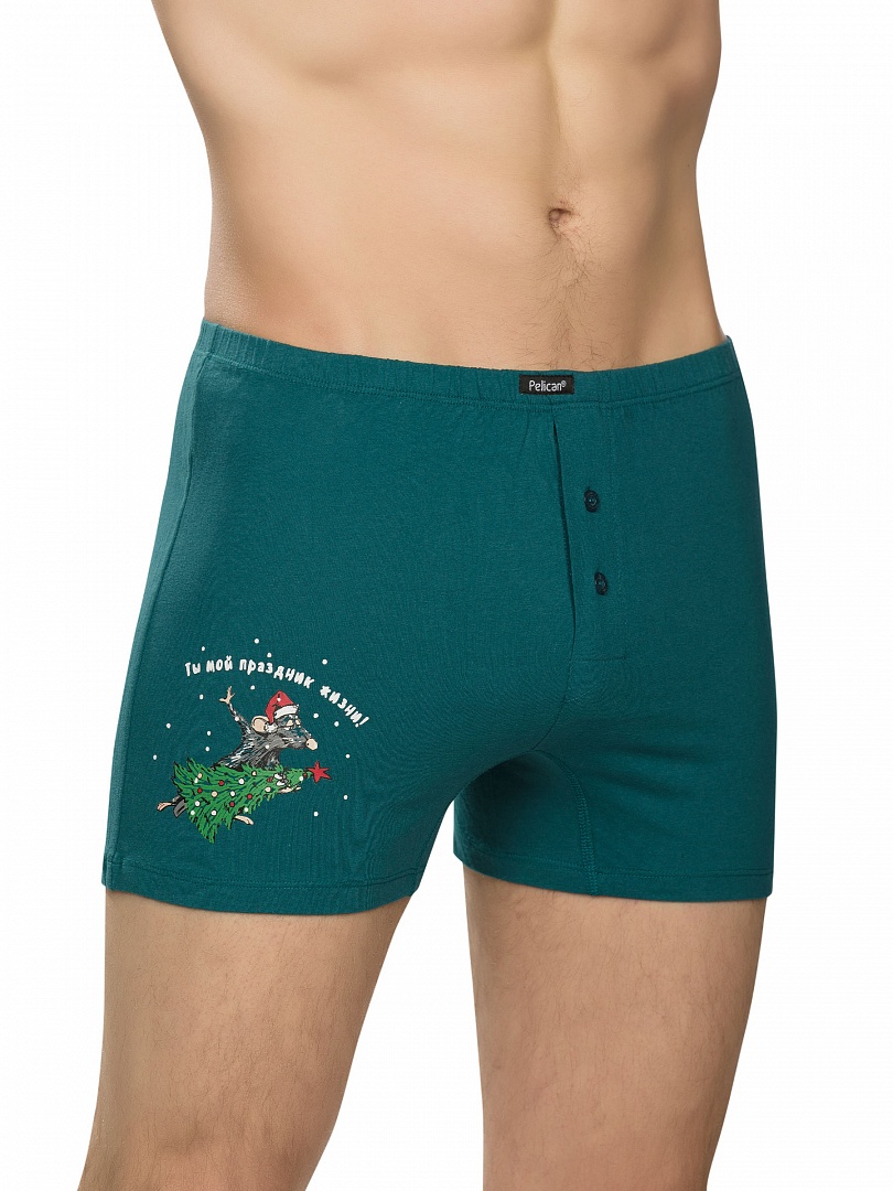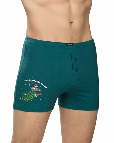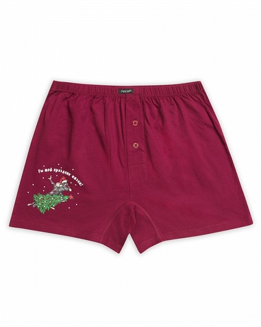 Мужские трусы-боксеры. На боковой части изделия прикольный новогодний принт: символ года, танцующий с ёлкой и надпись "Ты мой праздник жизни!". Гульфик на двух пуговицах. Состав: 100%хлопок