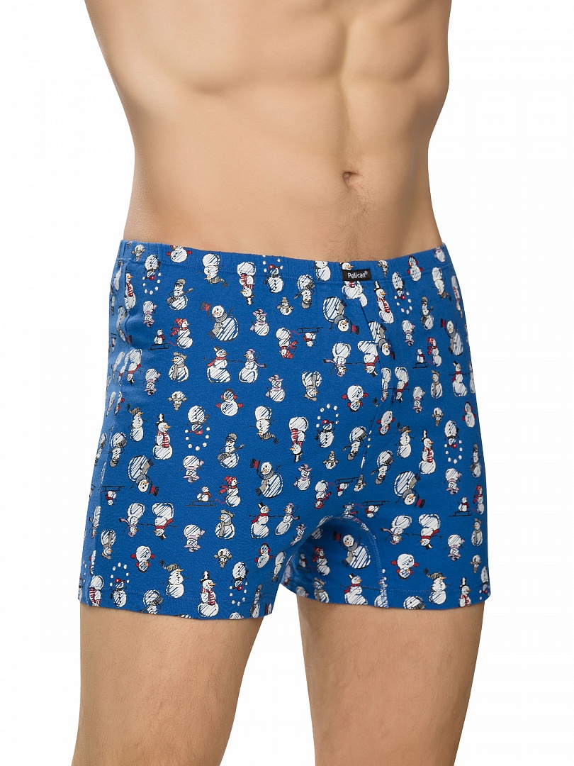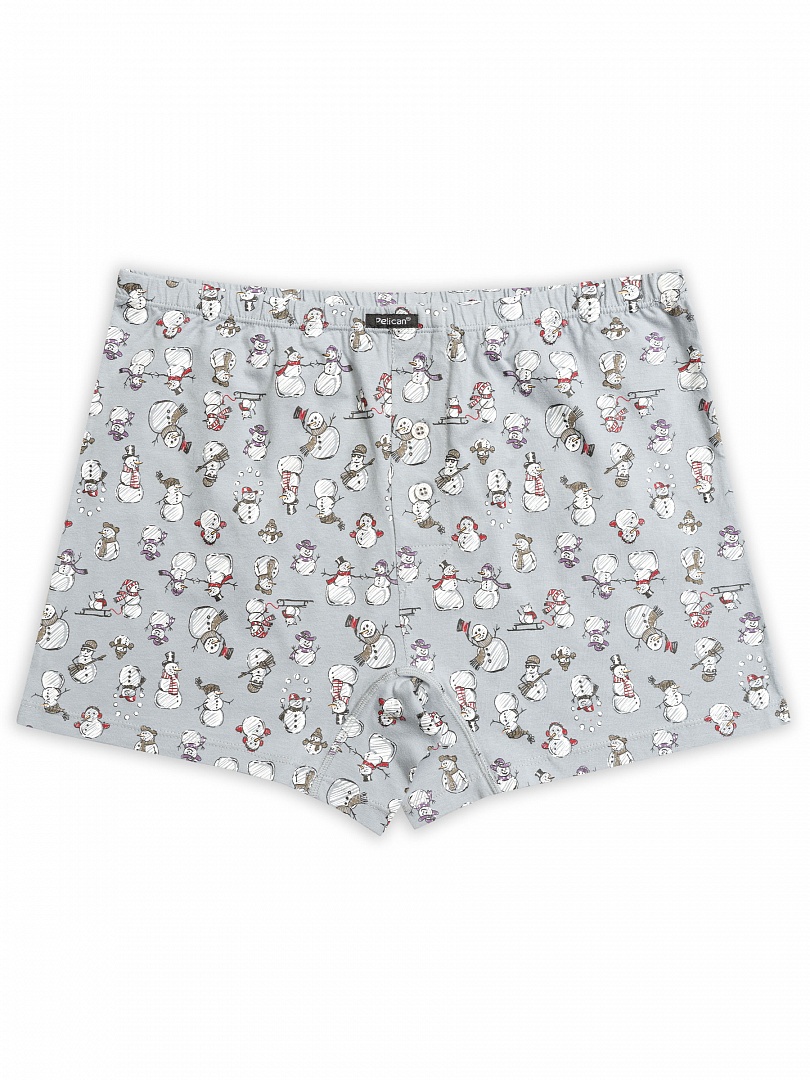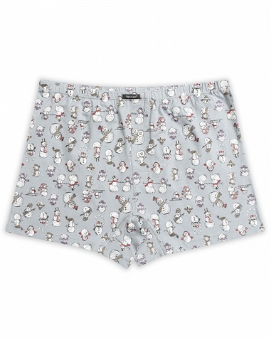 Мужские трусы-боксеры. Алловер принт в виде снеговиков. Гульфик на двух пуговицах. Состав: 100%хлопок