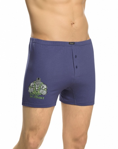 Мужские трусы-боксеры. Стойкий рабберный принт на боковой части изделия. Гульфик на 2-х пуговицах. Состав: 100%хлопок