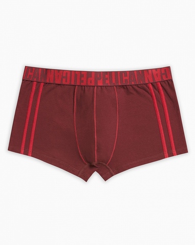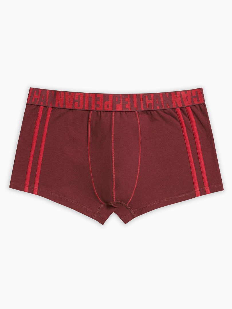 Мужские трусы-шорты в спортивном стиле. Низкая посадка. На передней части изделия по бокам двойные вертикальные полосы из пайпинга. Декоративная отстрочка в области гульфика. По талии широкая тканая резинка в два цвета. Состав: 93%хлопок 7%эластан