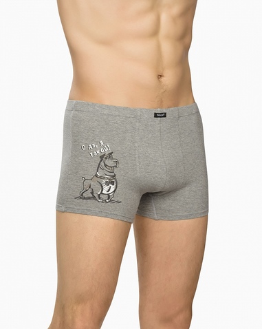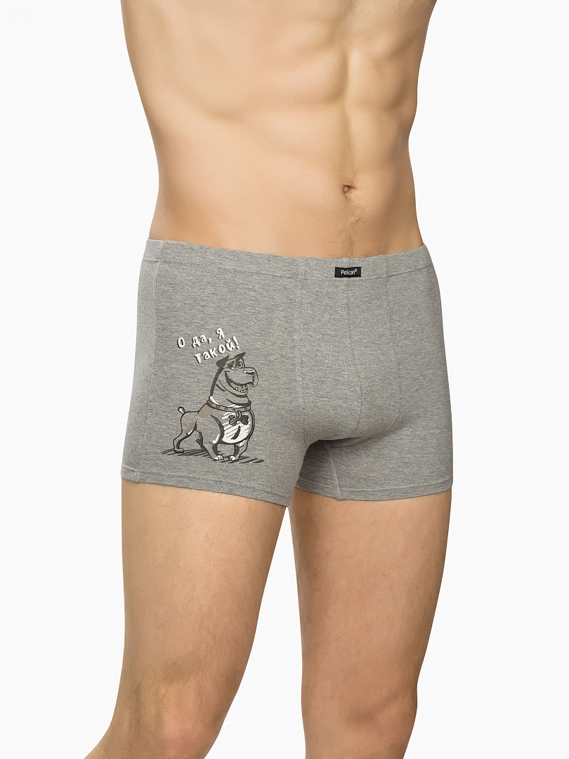 Классические мужские трусы-шорты. Средняя посадка. На боковой части изделия прикольный принт: отрисованный в скетчевом стиле заигрывающий бульдог и надпись "О да, я такой!". Состав: 93%хлопок 7%эластан