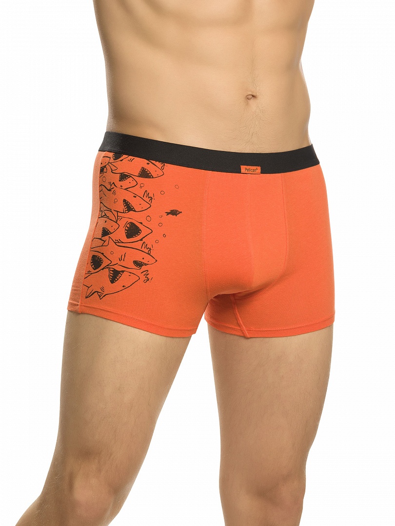 Мужские трусы-шорты. Принт на боковой части изделия. По талии широкий тканый эластик. Состав: 93%хлопок 7%эластан