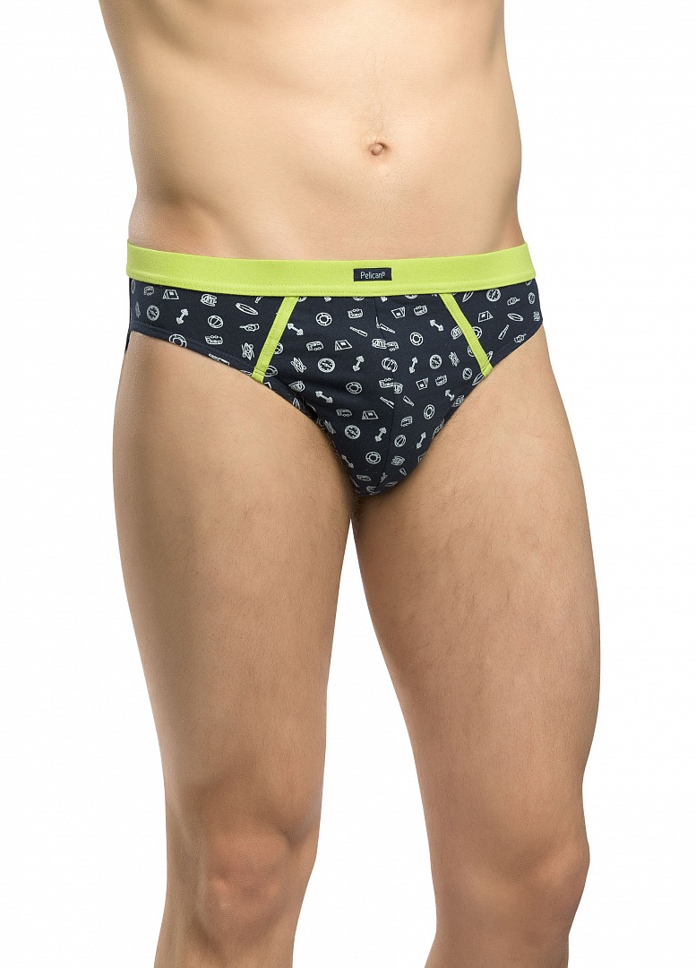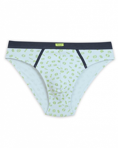 Мужские трусы-слипы со средней посадкой. Принт-прикол на тематику летнего отдыха, контрастная отделка в области гульфика. Состав: 100%хлопок