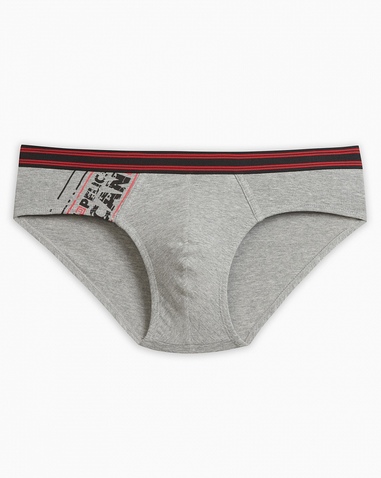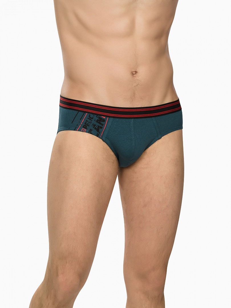 Классические мужские трусы-слипы. Средняя посадка. Спортивный стиль. Текстовый принт на боковой части изделия. Широкая тканая двухцветная резинка по талии. Состав: 93%хлопок 7%эластан