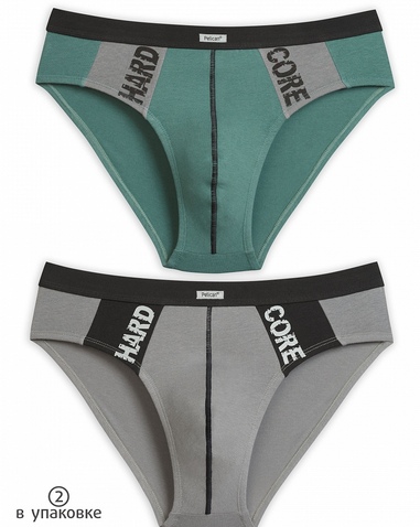 Классические мужские трусы-слипы. Высокая посадка. В комплекте 2 изделия. По центру изделия декор строчкой 2 needle decoration. На боковых частях изделия текстовый принт "Hardcore". По талии широкий эластик из пайпинга. Состав: 93%хлопок 7%эластан