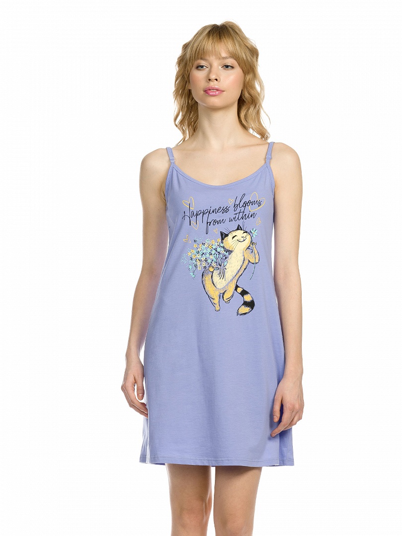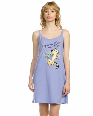 Платье женское. Сорочка умеренного объема с регулируемыми бретелями. Суперстойкий и эластичный принт. Перевод: "Счастье расцветает изнутри". Состав: 57%хлопок 38%полиэстер 5%эластан