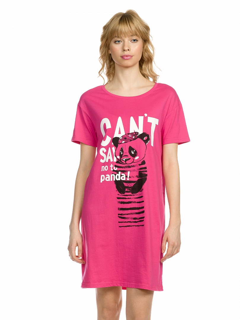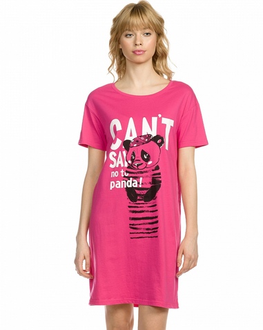 Платье женское. Платье-футболка прямого кроя среднего объема с мягкой линией плеча. Суперстойкий и эластичный принт. Перевод: "Не могу сказать нет панде". Состав: 60%хлопок 40%полиэстер
