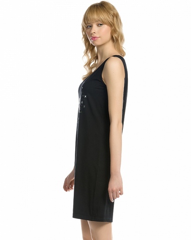 Платье женское. Платье-майка прямого кроя, умеренного объема на широких лямках. Суперстойкий и эластичный принт. Перевод: "Ты. Я.". Состав: 92%хлопок 8%эластан