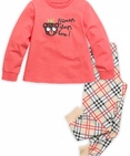 Пижама для девочек: джемпер и брюки. На джемпере центральный принт каррикатурный мишка. Брюки в стильную клетку, манжеты по низу брючин. Состав: верх: 100%хлопок, низ: 100%хлопок