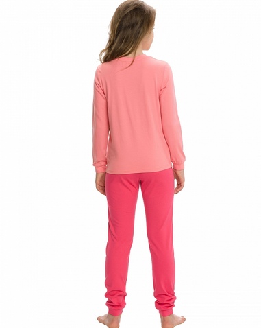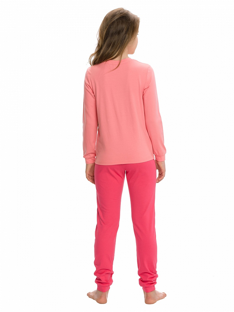 Пижама для девочек: джемпер и брюки. Классический джемпер, центральный принт с золотом, манжеты из риба. Однотонные брюки, по низу манжеты из риба. Состав: верх: 100%хлопок, низ: 100%хлопок