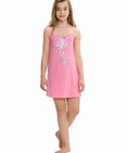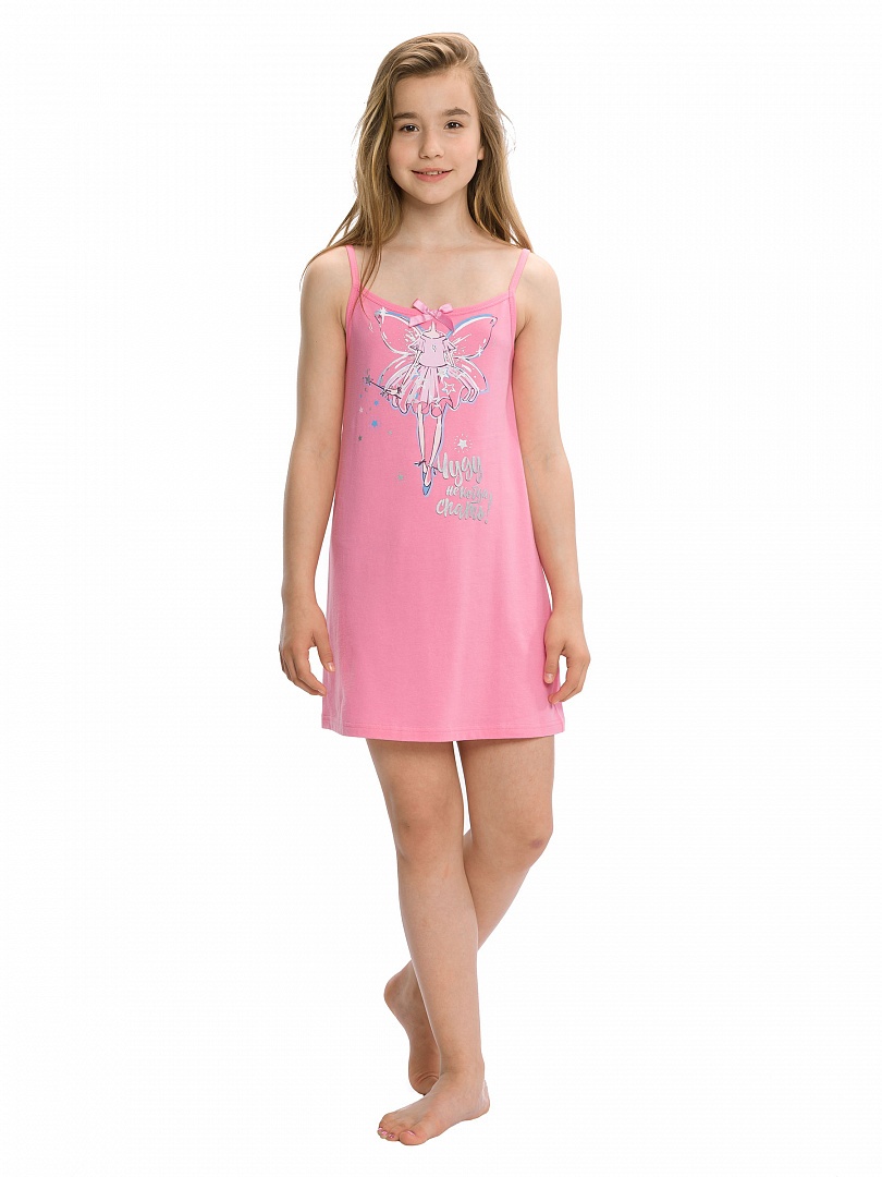 Ночная сорочка для девочек. Сорочка на тонких бретелях, вырез декорировна атласным бантиком. Центральный прнит с серебром. Состав: 100%хлопок