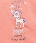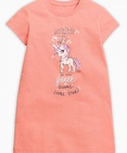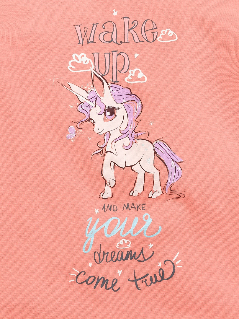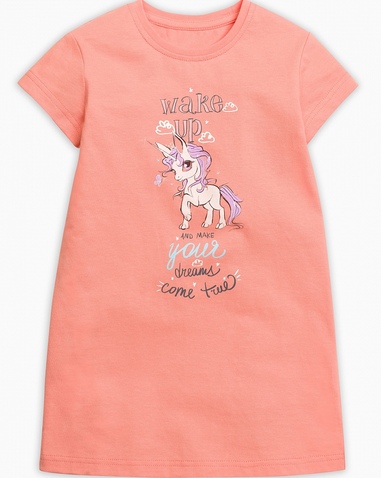 Ночная сорочка для девочек. Сорочка выполнена в нежном персиковом цвете. Центральный принт - волшебный пони и надпись (перевод) "Проснись и воплоти свои мечты". Состав: 100%хлопок