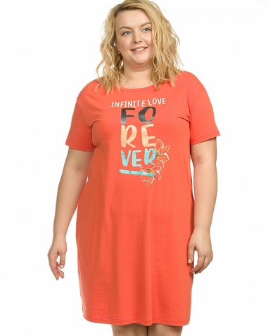 Платье женское. Обновленная модель. Умеренный свободный объем, современный крой рукава, мягкий плечевой пояс. Моно-принт с металлизированными оттенками разных цветов. Перевод: "Бесконечная любовь навсегда". Состав: 57%хлопок 38%полиэстер 5%эластан