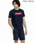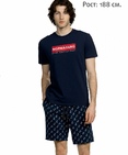 Комплект мужской: футболка и шорты. Рост 188 см. Футболка прямого кроя, свободного объема. Суперстойкий эластичный принт. Удлиненные шорты комфортного объема из тонкого принтованного футера, с карманами в боковых швах. По талии - внутренняя резинка и шнурок в кулиске. Состав: верх: 57%хлопок 38%полиэстер 5%эластан, низ: 65%полиэстер 35%хлопок