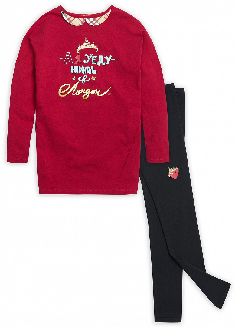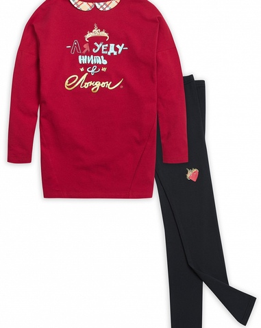 Комплект для девочек: туника и брюки. Туника - баллон с силуэтом оверсайз со спущенной линией плеча; спинка ниже переда; new-декор - модный плосколежащий воротник с принтом в клетку. Классические лосины; яркий принт-акцент. Состав: верх: 95%хлопок 5%эластан, низ: 93%хлопок 7%эластан