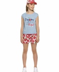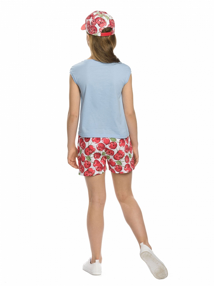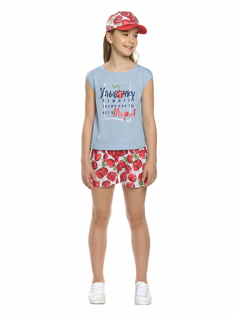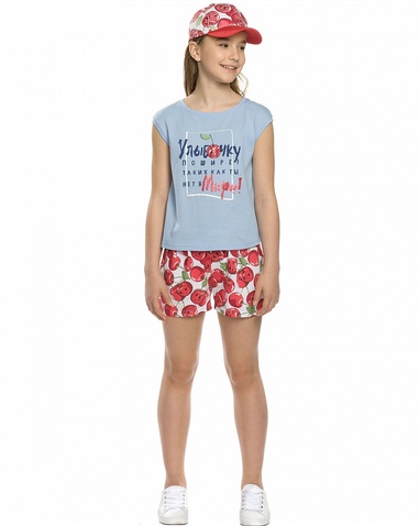 Комплект для девочек: футболка и шорты. Футболка умеренного объёма, спущенное плечо; в принт добавлена голографическая посыпка. Шорты с защипами по переду, с регулировкой по поясу Состав: верх: 100%хлопок, низ: 60%хлопок 40%полиэстер