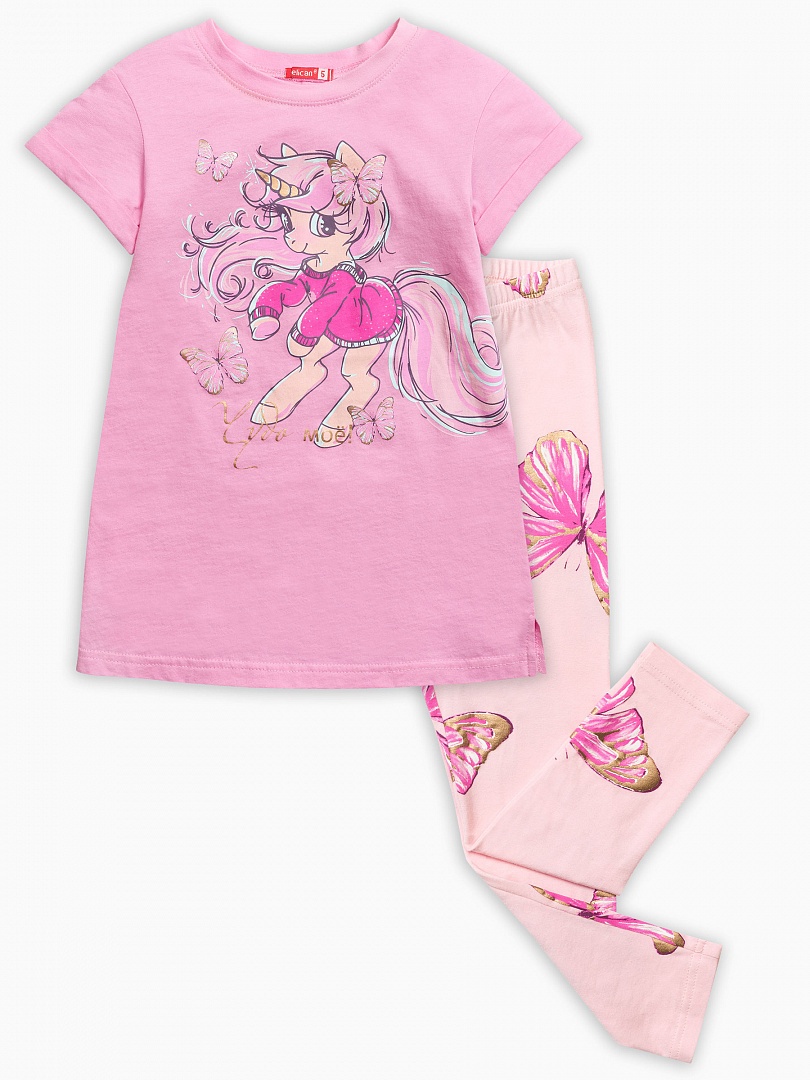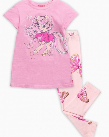 Комплект для девочек: футболка и лосины. Состав: верх: 100%хлопок, низ: 95%хлопок 5%эластан