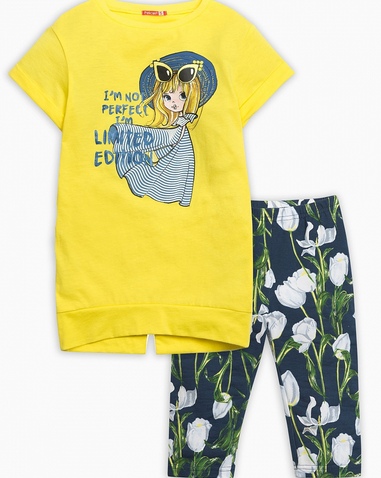 Комплект для девочек: туника и лосины. Новый трикотаж, мягкий и пластичный. Туника оверсайз, по низу фигурная манжета с разрезом на спинке, рукав с подгибкой и закрепкой по краю.Стойкий мягкий soft-принт c блестками, не резиновый, перевод "Я не совершенство, я лимитированного выпуска". Лосины без боковых швов, по талии на широкой внутренней резинке. Состав: верх: 60%хлопок 40%полиэстер, низ: 95%хлопок 5%эластан
