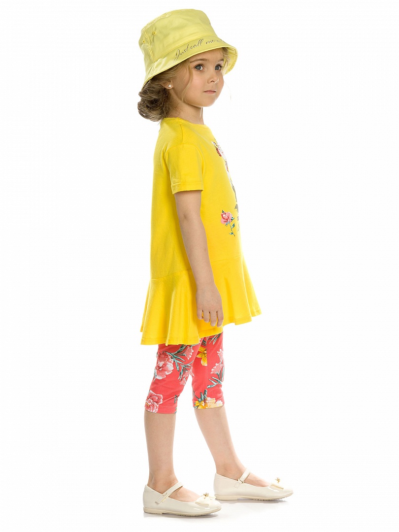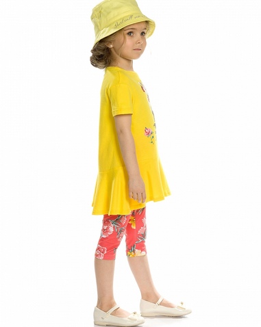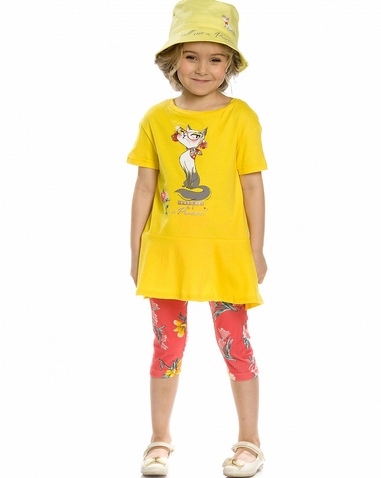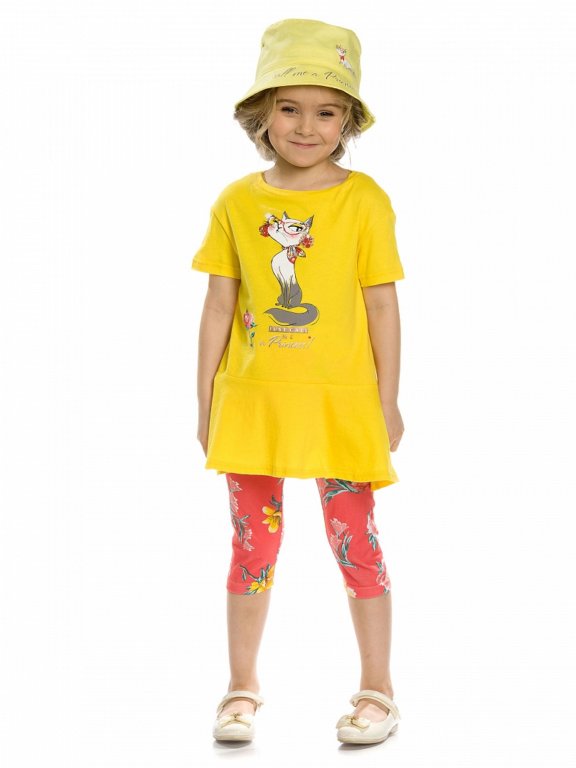 Комплект для девочек: туника и лосины. НОВИНКА КРОЯ! Туника более расширенного силуэта, с мягкой линией плеча и фигурным низом с воланом; перевод принта "Просто называй меня принцессой". Укороченны яркие лосины. Состав: верх: 100%хлопок, низ: 95%хлопок 5%эластан