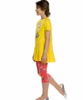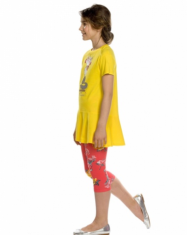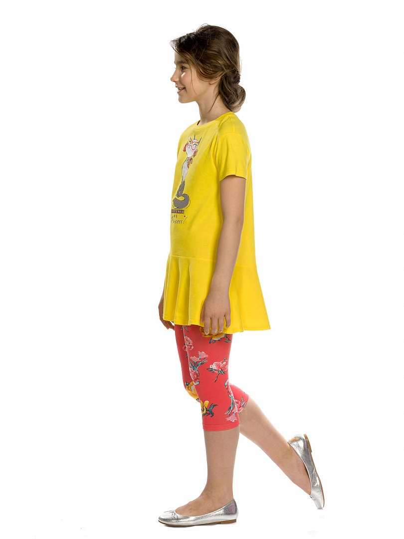 Комплект для девочек: туника и лосины. НОВИНКА КРОЯ! Туника более расширенного силуэта, с мягкой линией плеча и фигурным низом с воланом; перевод принта "Просто называй меня принцессой". Укороченны яркие лосины. Состав: верх: 100%хлопок, низ: 95%хлопок 5%эластан