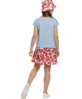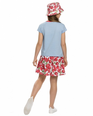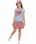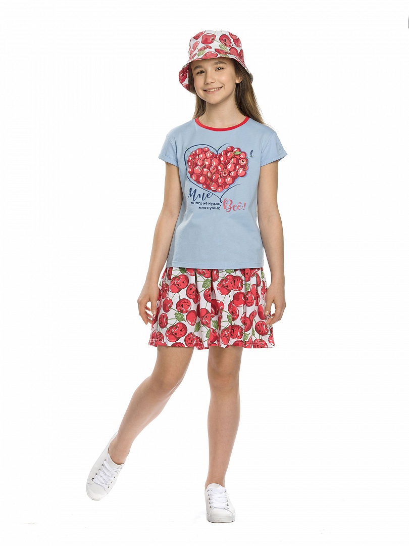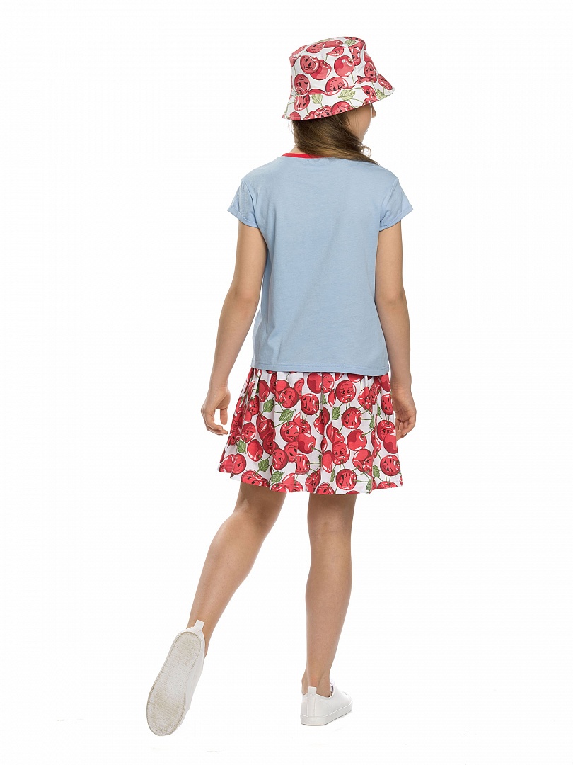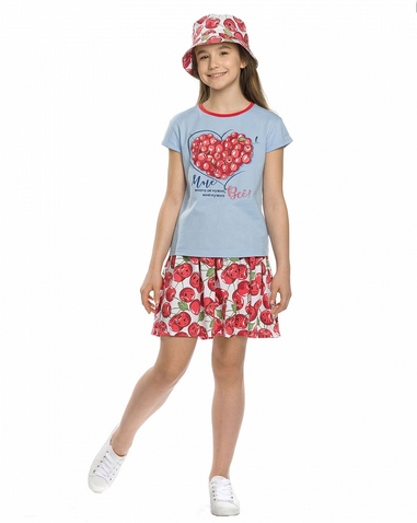 Комплект для девочек: футболка и юбка. Футболка умеренного объёма, по низу рукавов отвороты с закрепкой по краю. Расклешённая юбка, пояс на резинке. Состав: верх: 100%хлопок, низ: 60%хлопок 40%полиэстер