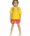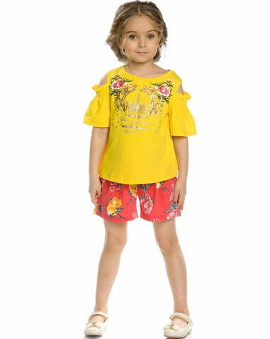 Комплект для девочек: майка и шорты. НОВИНКА КРОЯ! Майка более расширенного силуэта и более объёмной формы рукавов, центральный принт с добавлением золота. Шорты с защипами по переду, с регулировкой по поясу. Состав: верх: 100%хлопок, низ: 60%хлопок 40%полиэстер