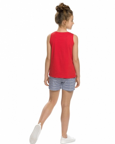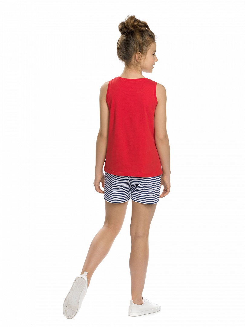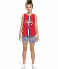 Комплект для девочек: майка и шорты. Майка умеренного объёма, силуэт трапеция; текст принта с голографической посыпкой. Шорты с защипами по переду, с регулировкой по поясу Состав: верх: 100%хлопок, низ: 100%хлопок