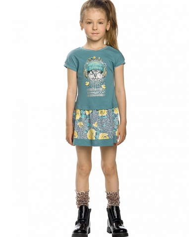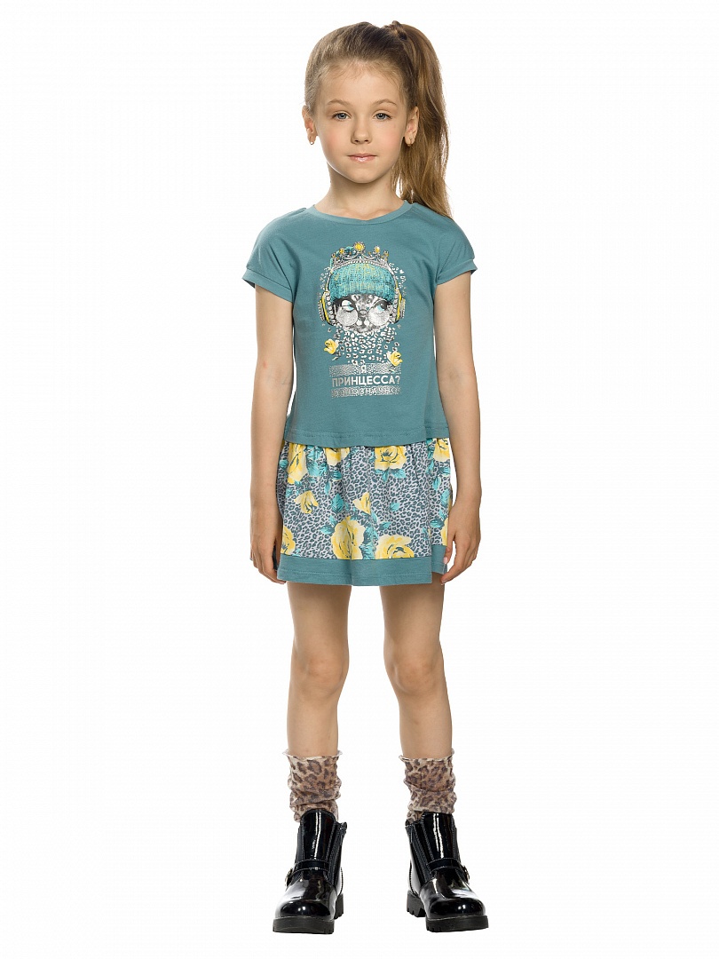 Платье для девочек. Имитация футболки и юбки. Центральный принт в сочетании двух блесков: гладкого и фактурного в виде посыпки, надпись "Я принцесса? Однозначно!". Состав: 100%хлопок, вставка: 95%хлопок 5%эластан