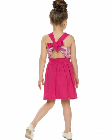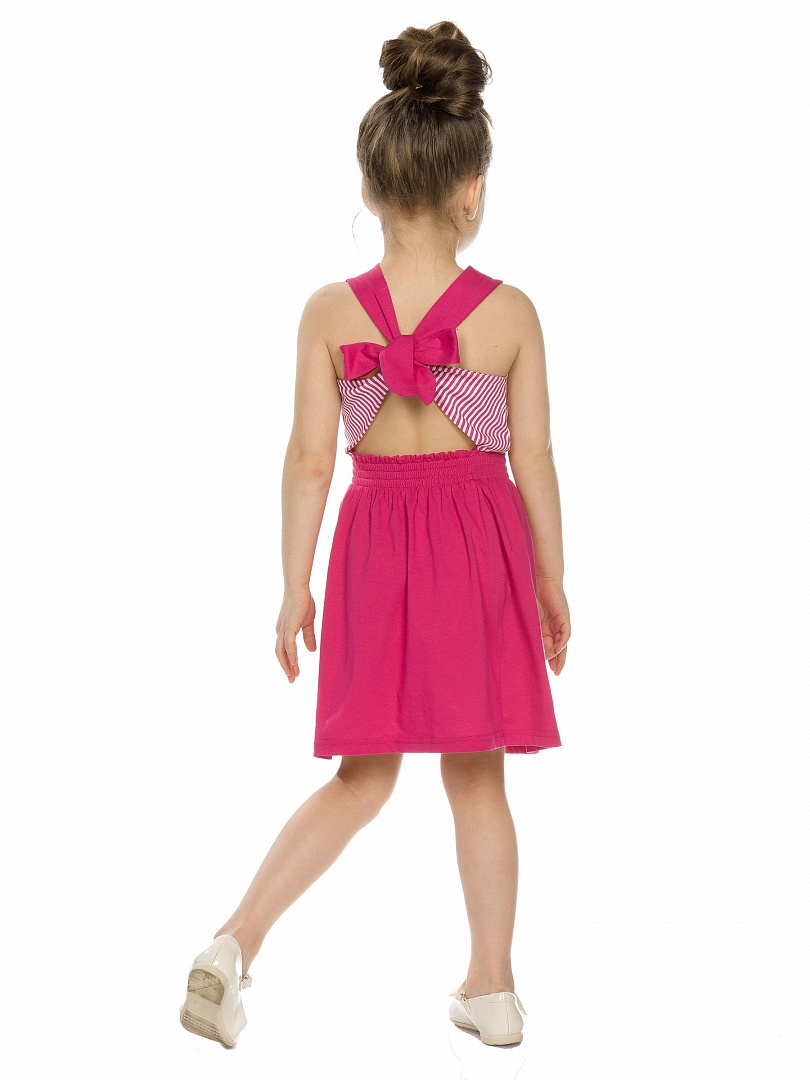 Платье для девочек. Платье-сарафан; талия на резинке; декор на спинке изделия - бретели завязываются в красивый бант. Состав: 60%хлопок 40%полиэстер