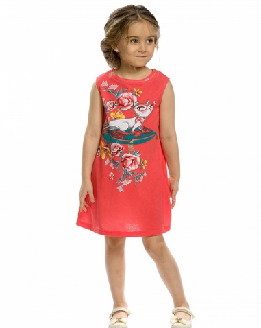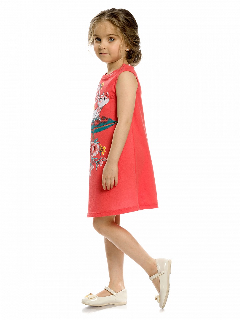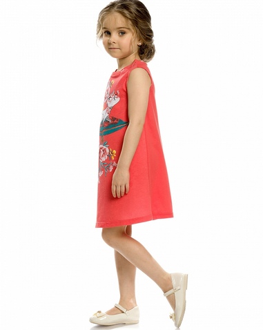 Платье для девочек. Платье-майка трапециевидного силуэта. Платье без рукавов, длина плеча и линия проймы аккуратно прикрывают плечи и создают мягкий девичий образ. Простой, лаконичный крой платья дополнен ярким OVERSIZE принтом на весьперед изделия. Состав: 60%хлопок 40%полиэстер