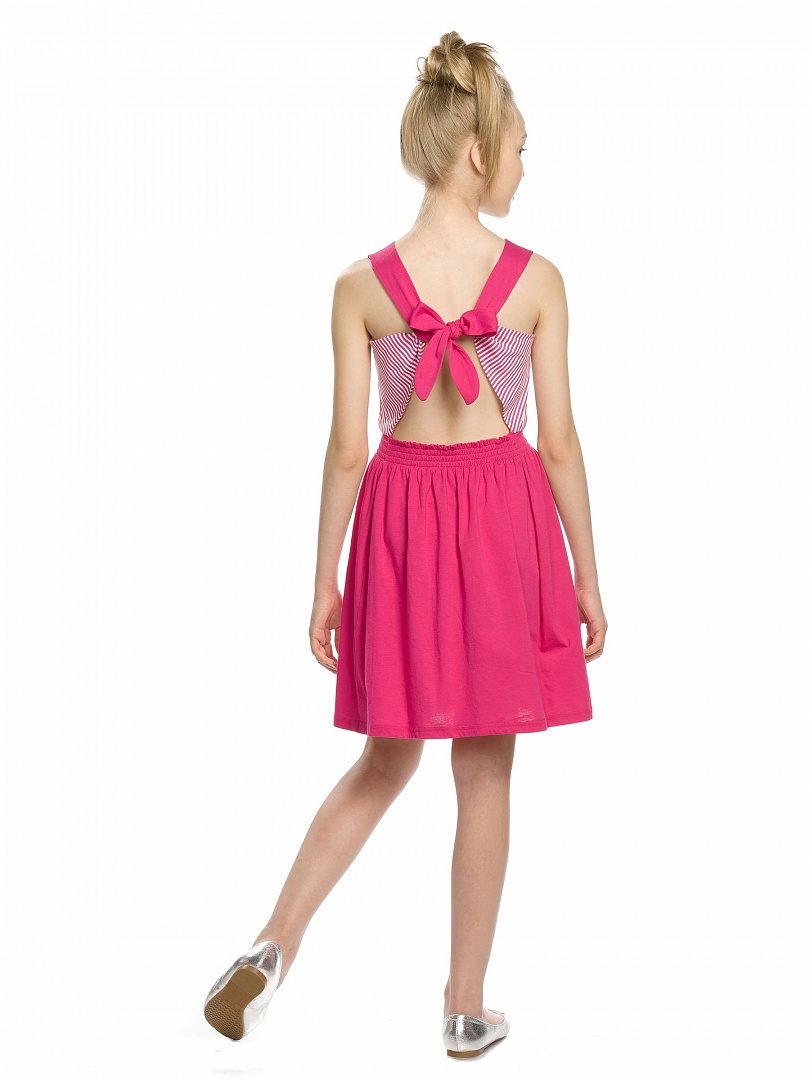 Платье для девочек. Платье-сарафан; талия на резинке; декор на спинке изделия - бретели завязываются в красивый бант. Состав: 60%хлопок 40%полиэстер