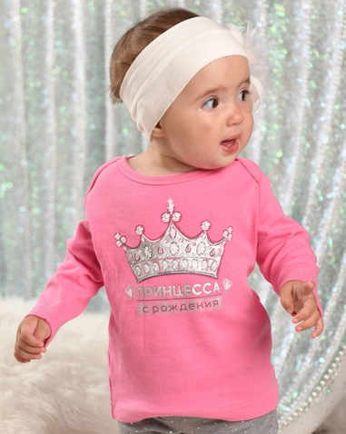 Джемпер для девочек. Комплект из 2-х изделий. Джемперы с центральными принтами с серебром. Специальная форма выреза горловины позволяет легче и быстрее надевать джемпер на малышку. Состав: верх: 100%хлопок, верх2: 100%хлопок