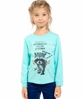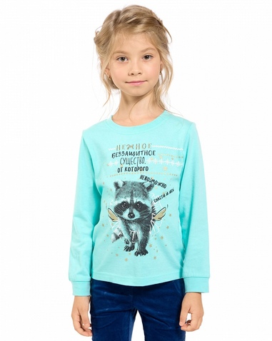 Джемпер для девочек. Классическое джерси. Центральный принт с золотистыми переливающими блёстками в виде милого енота и надпись "Нежное беззащитное существо, от которого невозможно спастись!". Состав: 95%хлопок 5%эластан