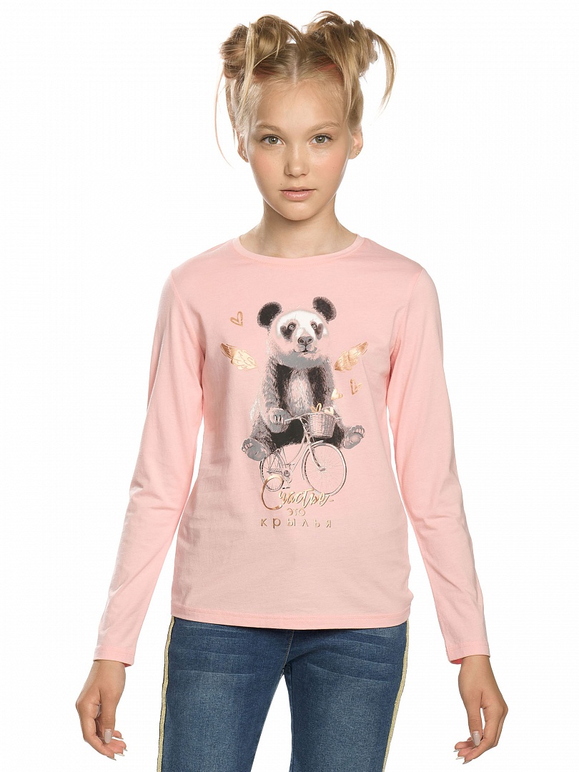 Джемпер для девочек. Базовое джерси. Центральный принт с золотым блеском и надпись "Счастье это крылья". Состав: 100%хлопок
