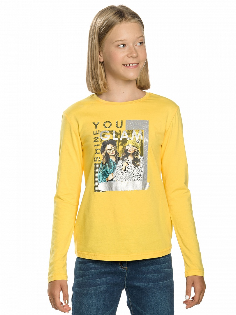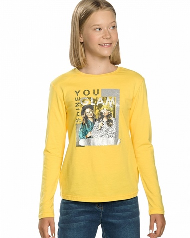 Джемпер для девочек. Базовое джерси. Центральный фотопринт с блеском и надписью "Ты - сияние гламура". Состав: 100%хлопок