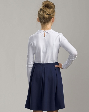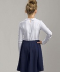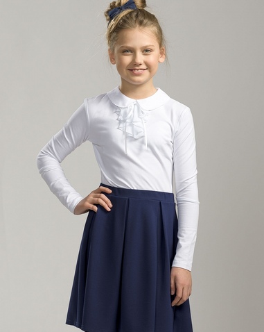 Джемпер для девочек. Новая модель джемпера с нежным жабо из сетки и дополненным бантиком из узкой ленточки, с отложным воротником из швейной ткани. По спинке застежка «капелька» на одну пуговицу. Состав: 93%хлопок 7%эластан, вставка: 85%нейлон 15%эластан, вставка: 60%хлопок 40%полиэстер