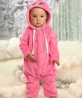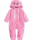Комбинезон для девочек с капюшоном. Уютный и мягкий комбинезон из хлопкового велюра. Застёжка на кнопки по центру изделия и по ножкам. Одношовный капюшон с регулировкой объёма в виде шнурка. Капюшон декорирован вышивкой в виде кошачьей мордочки и кошачьими ушками. Втачной рукав. Комбинезон имеет два варианта исполнения: с ползунками для возраста 1-6 месяцев и брючками для возраста 6-12 месяцев (низ брючек обработан широким пайпингом). Состав: 80%хлопок 20%полиэстер, вставка: 100%хлопок