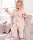 Комбинезон для девочек с капюшоном. Уютный и мягкий комбинезон из хлопкового велюра. На передней части изделия, по центру, функциональная отстёгивающаяся деталь, которая облегчает процесс надевания комбинезона. Деталь декорирована аппликацией с золотом в виде мордочки мышонка, с внутренней стороны которой водорастворимая плёнка, и ушками. Застёжка по центру изделия и отстёгивающейся детали на кнопках. Комбинезон имеет два варианта исполнения: с ползунками для возраста 1-6 месяцев и брючками для возраста 6-12 месяцев (низ брючек обработан широким пайпингом). Состав: 80%хлопок 20%полиэстер