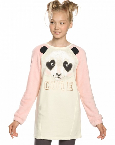 Толстовка для девочек. Сочетание футера и велсофта; рукава и манжеты из велсофта; силуэт "легкий бочонок"; рукав реглан; декоративные ушки. Центральный принт с золотым блеском и надписью "Милый". Состав: 96%хлопок 4%эластан, вставка: 100%полиэстер