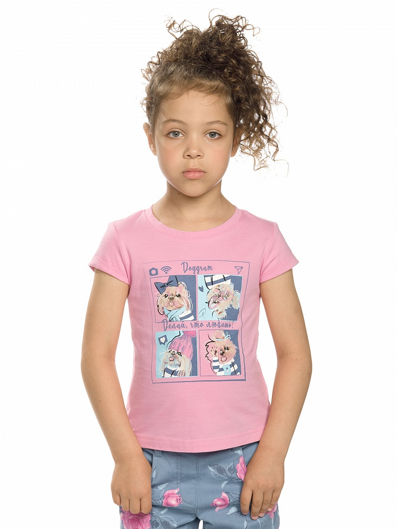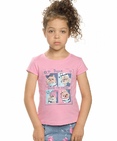 Футболка для девочек. Базовая модель, центральный принт. Состав: 100%хлопок
