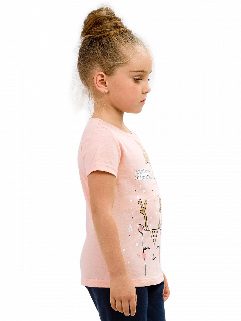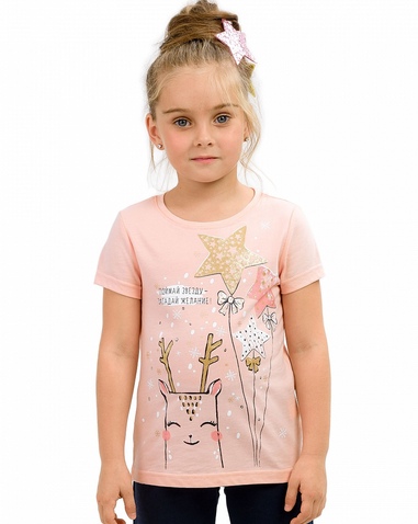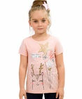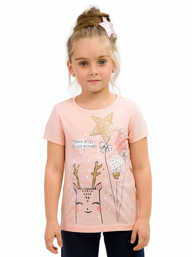 Футболка для девочек. Футболка умеренного объёма. Центральный принт в необычной стилизованной графике с золотистыми блёстками, надпись "Поймай звезду - загадай желание!" уносит в сказочную атмосферу. Состав: 100%хлопок