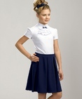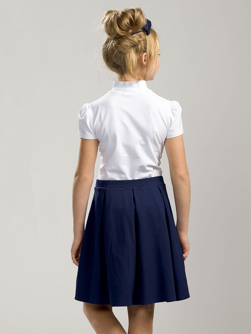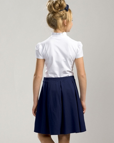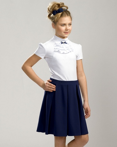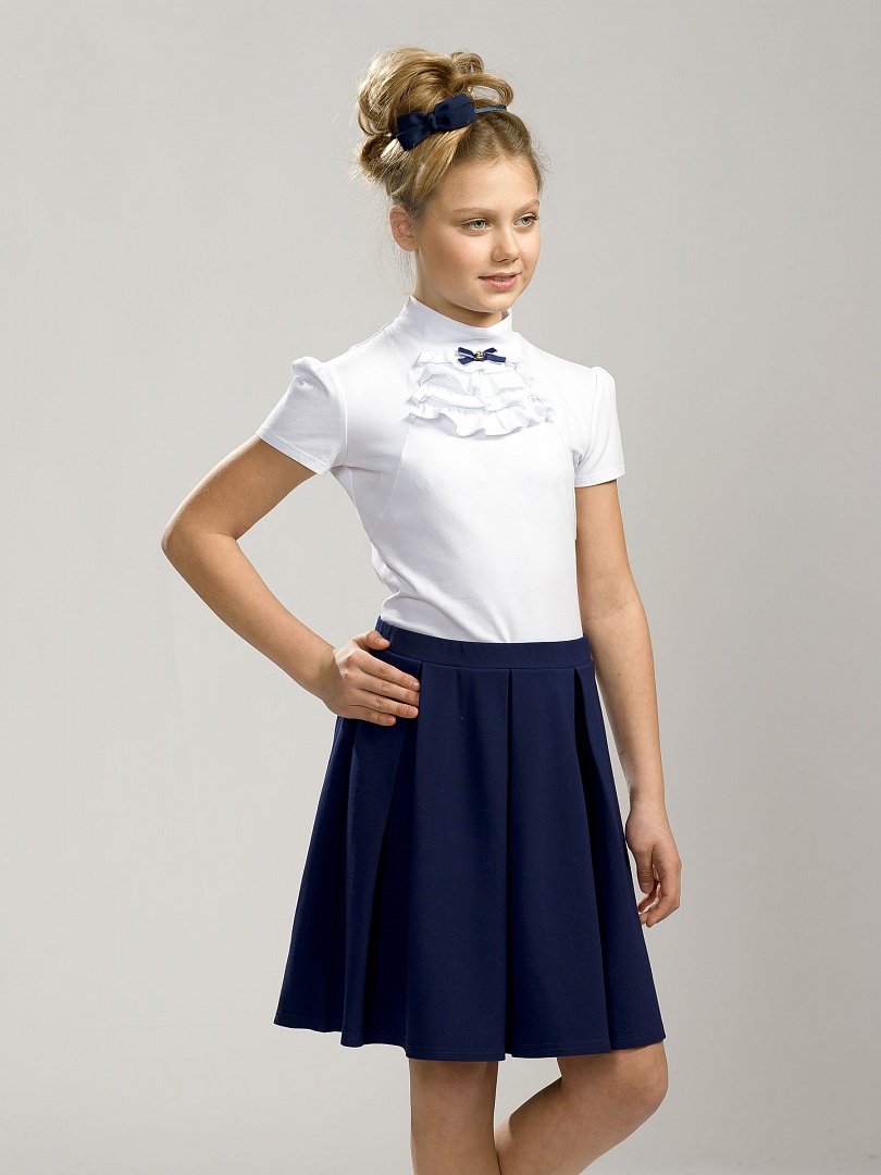 Футболка для девочек. Новая модель футболки, которая подходит как для повседневной носки, так и для торжественных школьных случаев. Украшением модели является жабо, выполненное из четырех рядов рюш из основного материала. Состав: 93%хлопок 7%эластан